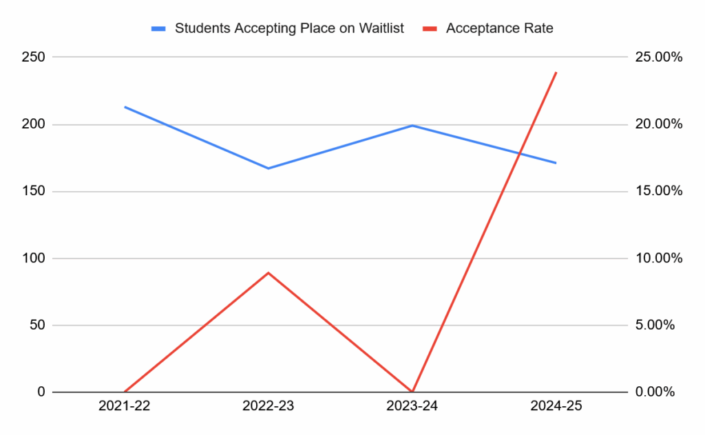 | Year | Students Waitlisted | Students Accepting Place on Waitlist | Students Accepted Off the Waitlist |